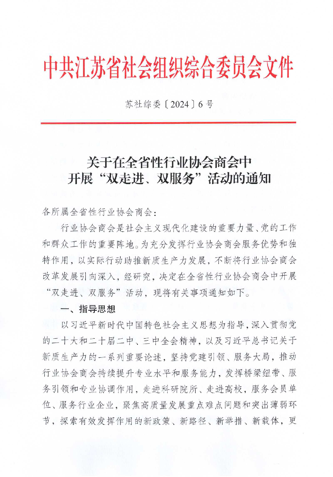 关于在全省性行业协会商会中开展“双走进、双服务”活动的通知