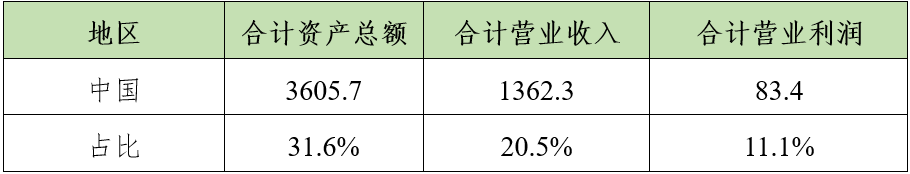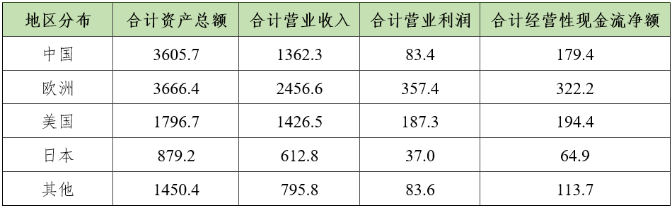 除中国以外,其他地区公司合计资产总额均有不同程度的增长。在整体营业利润下滑的情况下,欧洲公司合计营业利润增长8.7%,体现了较强的盈利能力。