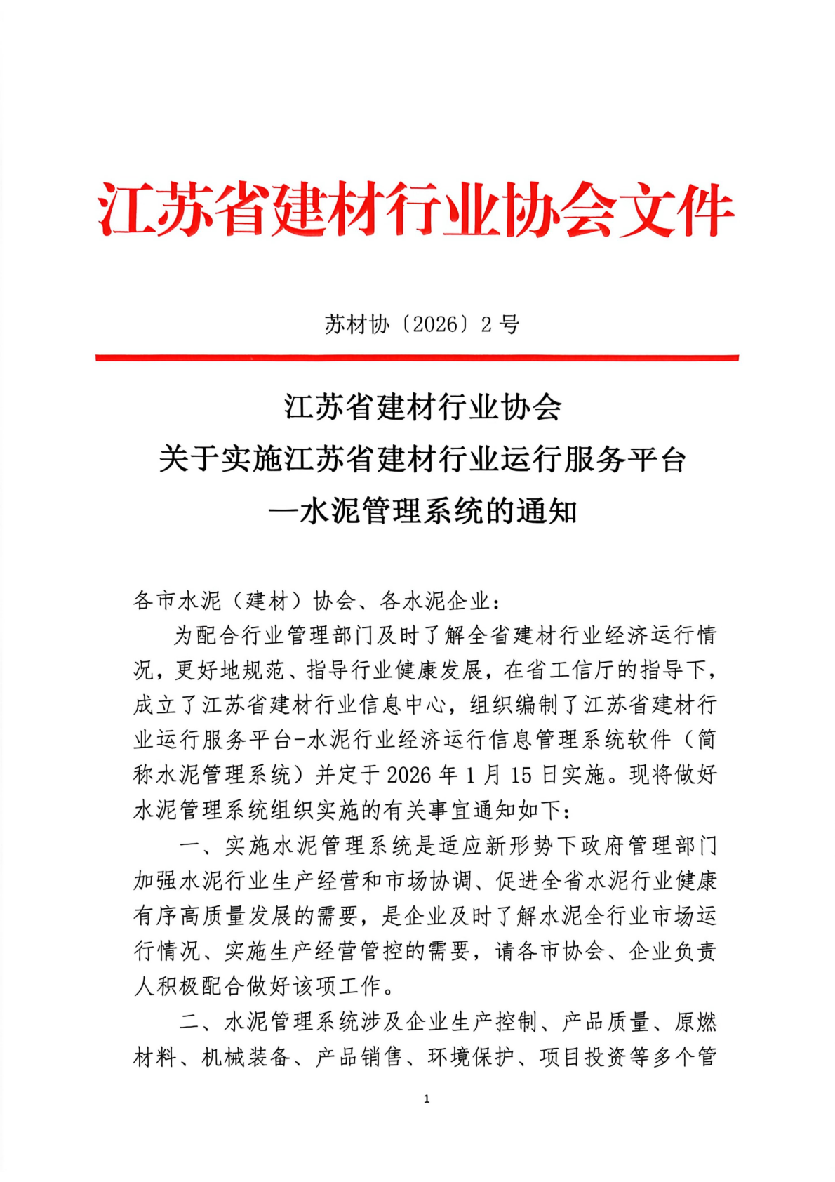 关于实施江苏省建材行业运行服务平台——水泥管理系统的通知