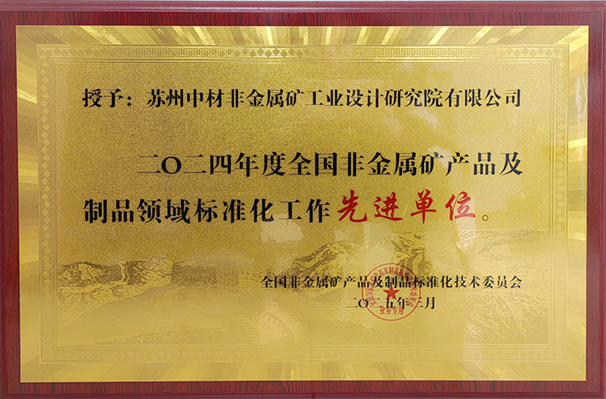 苏州中材非金属矿工业设计研究院有限公司被全国非金属矿产品及制品标准化技术委员会授予"2024年度全国非金属矿产品及制品标准化工作先进单位"荣誉称号、潘卫同志被授予“2024年度全国非金属矿产品及制品标准化工作先进个人”荣誉称号,同时贺洋、刘定桦、陈慧杰、刘克起等四位同志入选全国非金属矿产品及制品标准化技术委员会分委会委员。