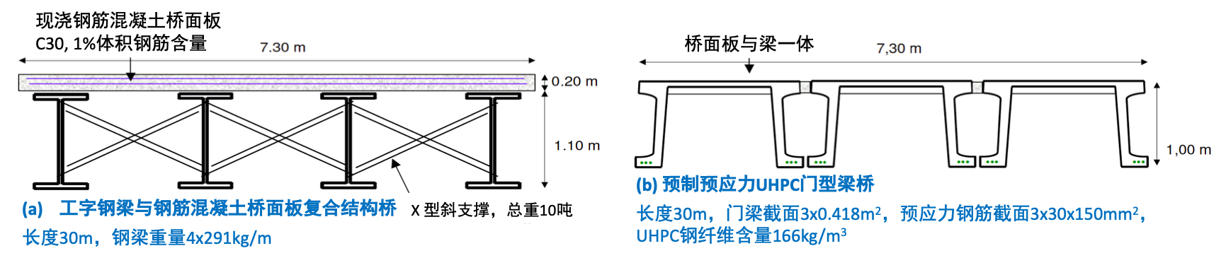 图5-4:北美常用钢-RC梁桥和新型先张预应力P型UHPC梁桥上部结构 [7]
