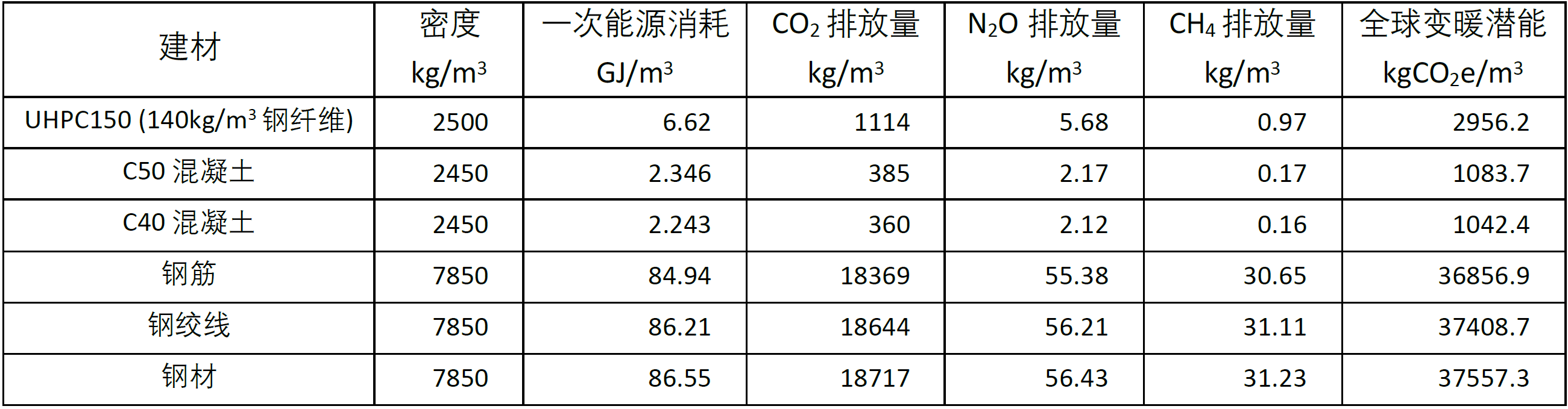 可见,对于老化、损伤或不能满足现代标准要求的现有工程结构,要尽可能避免“更换”或“重建”,使用UHPC修复使之“再生”能够大量地减少碳排放。